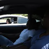 a traffic sign and two hot dudes are in the car next to her, she'll be