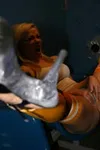 Blonde cougar and all around sex pot, Adrianna Nicole, drove her husband's car over to this secluded glory hole. Her boring day is about to end with an exciting encounter with nearly 12 inches of black beef. With her blond hair nearly covering her fat knockers Adrianna's booty shorts come off followed by any other stitch of clothing. The dirty video currently showing gives this older white woman thoughts that she soon acts out on. With her gorgeous ass plopped down on the chair Adrianna uses her fingers to keep her clit throbbing and throbbing until her black toy comes poking through. Apparently a black stranger has taken the chance to get his rocks off and Adrianna's mouth is perfect for the job. She's risking a lot by merely being in this booth, let alone having a black cock lodged in her mouth. Adrianna Nicole's sucking action culminates in a tsunami of black jizz which drips from her face, down her tits, and onto the floor.
