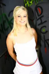Private restrooms weren't meant for deviant things to happen in them. Allana Thomas walked in and immediately saw the writing on the wall.....literally. The tagged up walls were only matched in filth by the dried jizz stains on the floor. Allana Thomas didn't seem to have a care in the world and the feeling in her gut was that something interesting was about to happen. After losing way to much clothing just to use the bathroom Allana treated herself to orgasm after orgasm until her pussy couldn't take it anymore. She soon found herself fixated on a black cock from sheer size alone. With her saliva glands going into overtime Allana jumped on that dick and treated her mouth to a black cock invasion. His dry, black cock soon became coated in her spit as her tongue went up and down his cock in every possible way. Her hands and mouth worked together to guarantee a shower of black jizz which she took with complete gusto.