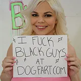 Alice Frost's boyfriend has no idea that he's dating a chick that gets her rocks off by fucking random black guys. Alice is on the phone with boyfriend and assuring him that she's "just having lunch with her girlfriends." However, she's only telling half a lie....she's about to be fed nearly a feet of random big black cock. Alice enters the public restroom while not caring that her possessive boyfriend is home alone, with his cock in hand. Alice's big tits get released from her bra and it's not too long before a random big black cock uses the glory hole to his advantage. Alice gets her knees dirty as she sucks down that stranger's massive black jackhammer. Her phone keeps ringing as hey boyfriend's paranoia gets stronger and stronger-can you blame him? After all his busty blond girlfriend is riding a random big black cock BAREBACK. Alice's face and tits eventually get splashed down by that anonymous cock, and remorse covers her face as she makes amends to her boyfriend over the phone. We give that relationship another 2-4 weeks.