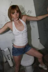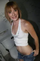 Nothing like a slender redhead with a flame bush and freckles on lily-white skin. Allison agreed to go into our glory-hole laden bathroom and do the nasty fuck and suck with a stranger's dick through a hole in the wall, what she didn't know was that it would going to be a coal black dick! Allison always had a racist bent, and although she had nothing against a black dude, she just didn't really have a desire to put his dick in her mouth, or in her pussy, not to mention suck him off and eat his jizz! But she needed the money, so she made a couple of exceptions, and managed to accomplish some firsts for herself!
