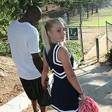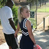 There are a few instances in where "girl talk" has had a positive result. Alyssa Branch was confided in by her girlfriend, Nicole, and was told about the amount of black cock underneath Flash Brown's pants.The only thing sweeter would be to do it for the first time on camera for other black cock sluts to watch. Another friend told her of his weakness for cheerleaders and that was all the flirting needed to convince Flash to bring this piece of white meat back to the crib. Flash Brown's bed would be the spot where a petite white cheerleader would get so much black cock she'd go nuts if given anything else in her tight box. Alyssa's eyes pop out of her head when the highly praised black pipe on Flash emerges from his basketball shorts and her drooling ends up on his fine sheets. Look closely and you can see her ribcage inflate and deflate while mouth goes deep down on a black cock that's excavating her esophagus. Those blonde pigtails whip all over the place as Alyssa's mouth and hands are overwhelmed by a black cock that is about to disfigure another white pussy. The look of pain/pleasure on Alyssa's face says it all from the moment her pussy takes the tip of his cock to the minute his balls are massaging her clit. Flash's black bazooka penetrates the depths of Alyssa's pussy reaching places no white cock has ever explored. Cheer leading practice takes a backseat to Alyssa's pussy getting stretched to the circumference of a fire extinguisher, and her screaming nearly shook the walls to their foundation. Each pump and thrust of that big black cock just meant that Alyssa was closer and closer to getting her face splashed with black gumbo. Alyssa Branch now has her first scene under her skirt but it's doubtful any future cocks will be as massive as Flash Brown's.