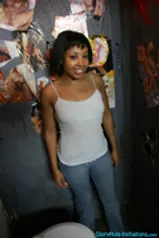 This week's update is another black hottie, Angelica Black. She's got some sweet, firm nubile titties. She was a little freaked when we brought her to the gloryhole, because it was so nasty and dirty, but she didn't wait once a white cock came through the hole. She admitted she'd never had a white cock so that excited her even more!