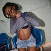 Becky hasn't had much sexual experience, and was taking the advice of one of her girlfriends and checking out the adult bookstore down the street. Her gf was in there last week when a big white dick popped through the hole in the wall from the booth next door, and she had a righteous time sucking it and stuffing it into her black pussy! Becky went in, seated herself, and stripped naked in anticipation of the hot video she paid to see. As she started stroking her dark pussy lips, a huge white dick appeared, as if by magic, to give her something more interesting to play with. Becky couldn't wait to wrap her lips around this new treat, and sucked so hard she was drowning out the movie. As it grew harder, her desire to feel it inside her grew stronger, and she found a way to jam it in her wet slot and fuck him despite the obstacle of the wall. She wanted cum next, and knelt back on that nasty floor and jerked that huge dick until it was spurting his special sauce all over her mouth and face.