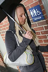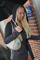 Carla is on vacation in LA, and is stunned to find out that it does indeed rain in California, in fact it has every day of her vacation. To find a little excitement, she seeks out a gloryhole, and with the right advice, manages to find ours. She enters, and strips, showing off one fine Hungarian body, which looks even better, as she masturbates and gets herself all worked up.