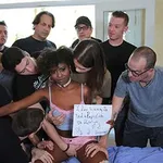 Daziy Cooper doesn't like Sundays...cause Sunday's means football, and football means her man is gone for the day with his buddies, laughing and looking at girls at the local sports bar. Daizy wants her man all to herself, so she strikes a deal with him: "I'll suck and fuck you, but no football! Stay home with me!" Hubby's in a weak state, cause he hasn't nutted in days...and Daizy's mouth and cunt are SO good. What's he do but make a promise...a promise he knows he can't keep! In the middle of their sex, the buddies arrive and interrupt the hot action. Guess what? They haven't nutted in a long time, so, "hunny, please show my homies some love!" That's what Daizy's boyfriend says, and Daizy is a little slut. A slut for white cocks. So sure, she'll go out to the patio and blow them all until each and every one of them -- including her boyfriend -- coat her pretty black face white! And guess what! They got it all done just in time to catch the kick off!