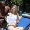 Dolly Leigh has a problem. She just got into a fight with her boyfriend, Timmy. Why is she having a talk with Flash Brown? Well...he's the reason for the fight. Timmy and Dolly and Flash are friends. In fact, Timmy and Flash hang out a lot. There's a lot of "couple dates", too: Dolly and Timmy and Flash and whoever the white girl Flash is banging all like to hang out and do things. But Timmy notices Dolly checking out Flash -- a lot. It doesn't matter if they're at a sports bar or walking on the beach or at a comedy club, Timmy always catches Dolly looking at Flash's crotch. And sure enough, Timmy's deepest fears are a reality. "He's right, Flash. I do look at you a lot...and wonder." It doesn't take long for Flash to sniff out fresh meat, and he doesn't care about Timmy as much as new, white, tight pussy. Oh sure, Dolly is going to try and back out ("what if I just let you rub my feet? That's ok, isn't it Flash?"), but we all know where this is going to end up: Dolly, on her knees with Flash's load dripping down her face...and talk of turning TImmy into her cuckold!!!