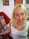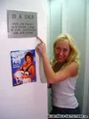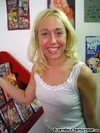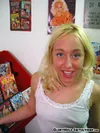 Goldie Coxx... Here's one cute little blonde with one of the BEST asses ever, not to mention she sucks a mean dick as well. Whe we get her into the adult bookstore she gets right to business. Before we could even get through the interview, she is already hiking up her skirt to play with her tight bald pussy. As soon as she sees a hrd dick pop through the hole, she drops to her knees and starts sucking! The money shot leaves Goldie in a gooey mess and she loves it!