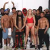 When Harley gets thrown out of her parents house (again!) she finds herself in need of short term shelter. Turning to her brother, he suggests she crash at a halfway house he recently spent time at after leaving prison. It's an all male facility but the manager owes him a favor, so Harley is offered a place to bunk. She just has to respect the rules and not cause problems. Well, being the slut she is, Harley just cannot help herself. All these men around, how could it hurt to just suck one dick. Now tip of the day - if you want to start sucking off one guy in a room packed with others you might expect guests. So when gang banging Ray spots dick being sucked he whips out his meat stick and the mouth riot is on. BBCs are flying out of zippers everywhere and all headed straight towards Harley's slobbering oral meat locker. Cock after cock bangs into her gullet and bounce off her head as she goes into cock suck overdrive. It's like a swarm of bees pollinating. These big black stingers are everywhere begging for sweet tongue mouth action. There is something truly mesmerizing about face fucking. Harley's little noggin is going back and forth as she greedily tries to fit every cock in at once. If this was the NFL we might have to check her for a concussion the way her head is bouncing off those hefty meaty love rods. Greedy little slut she is she lines them up and works the rows of cocks like she is in a all you can eat cock buffet. She gets tossed upside down and they pull a train using her mouth like it's a dripping wet wide open cunt. Slobbering and blithering in saliva she has elevated herself to being a living flesh cock socket. All those long nights of cock sucking in the backyard is really paying off for Harley as soon she has those cocks spitting up their appreciation of her skills in quarts of salty hot jazz brew. Blinded and glistening, Harley has never felt so welcome in a house like she does today. If only her mother could appreciate what this little slut means to all the guys in the neighborhood.
