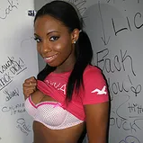She's barely legal and has the face of an angel and the cock sucking abilities of a hungry, dirty slut. Don't let the pigtails fool you for one minute. Underneath the prim and proper attire of this ebony piece of ass is a body built for fucking. In fact, having her pussy lips wrap around her first white cock was the last thing on her mind when she visited the little girl's room. After throwing caution (and her clothes) away Mahlia had a hearty feast of white dick and rode the wall for good measure. We hope she comes back to visit since getting an eyeful of this chocolate candy never gets old.