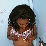 Meet this week's chocolicious gloryhole hottie, Megan Price. She was a little shocked when we sent her to our secret bathroom gloryhole, but her black pussy quickly got wet when she saw some lucky white stranger stuff his huge cock through the glory hole. She wrapped her sloppy-wet exotic black lips around his cock so fast he about busted a nut right there! She worked his cock with her mouth, then turned around and fucked him for a while 'till he blew his load all over her face, tits, legs... all over! ...then he was off into the night... and she never knew the actual identity of her first white cock.
