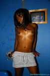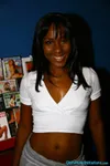 Miss Platinum has an AMAZING body. Her titties may be small, but those nipples are aweseome. They're like dark brown little pencil erasers! Yummy. Reminds me of when my dog had puppies. LOL! And that ass is flawless. But best of all, those big soft lips can suck the chrome off a trailer hitch! Miss Platinum sucked her first white cock completely anonymously thru our secret gloryhole, even fucked it for a while, then sucked again to take all the splooge in her mouth. Easily one of my favorite scenes.