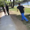 Monique Symone has just found herself as the pawn in a game between Xander Corvus and Mick Blue. The two guys are discussing the degree of difficulty when it comes to picking up European chicks vs. their American counterparts. Xander pretty much solidifies his argument when he encounters Monique Symone, and invites her inside to discuss things with him and Mick. Monique doesn't stay clothed long after the two white guys spit some fantastic game her way. The black slut uses her oral skills to back up the idea that black chicks love the WHITE MAN. Xander and Mick go on opposite ends of Monique and treat her openings to a blitzkrieg of honky meat. The bed's sheets slowly get drenched in the sweat of all three as the temperature rises on this interracial threesome. And after the loads they unleash on her, can you really blame her?