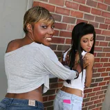 Rashae has always been a negative influence on Nadia Pariss. You could say that they are the Yin and Yang of black sluts and things are about to get interesting. Rashae has literally dragged Nadia to this public restroom in order to give Nadia an official welcome to the world of the gloryhole. Nadia's reluctnace is met with Rashae's insistance that both black girls enter the public restroom in search of some anonymous white cock. Rashae and Nadia get the experience of their young lives when a beefy white cock pokes through the hole in the wall. Nadia and Rashae take turns treating the wall to their tongues and wind pipes. We see both black sluts fight over an anonymous white cock until they house his pecker with their fuck boxes. The imprints of their black asses leave a moist residue on the wall that the janitor's going to have a tought time cleaning off. The only remaining thing to do is for Rashae to jerk off that faceless honky right into Nadia's eager mouth. With friends like Rashae who needs enemies?