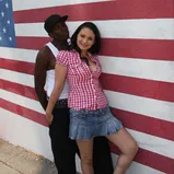 Rikki Love and Ice Cold are standing in front of a huge American flag painted on the wall with the words "united we stand" written above it. Ice uses this phrase to make a point about how the races are coming together, and when Rikki agrees, he suggests they also make the races come together, and suggest she accompany him for some cumming together. Once back at his place, he displays that huge black flagpole he keeps in his pants, and they start sucking and fucking like it's independence day! To spice things up, several load dumpers join in unexpectedly to add their own fireworks in the form of cumblasts to the face of Rikki.