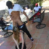 We all know what the first of the month means. Rent's due! For Ryan Riesling, that means something very different than when your rent is due. Ryan has roommates -- a lot of them -- they're all Black Bulls. In fact, Ryan's the only girl in the house...and she pays her rent with her holes. Today we witness it all first hand: Ryan comes out to the backyard, where our crew is caught up in a mean game of cards. Ryan announces her intention to pay rent, then drops to her knees, mouth wide open and tongue out. Each of her roomies take a turn fucking her mouth before getting her naked in order to ravage her tight, pink cunt. After a couple rounds of hard pounding, one of the Bulls drops an enormous load deep in her fertile womb as Ryan begs, "breed me!" Then she drops to her knees and a face splattering and some swallows before crawling back to her room. Gotta love them Snowbunnies!