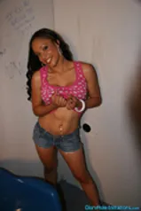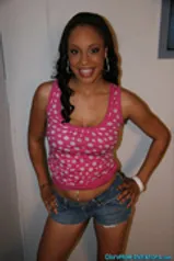 Shyla Haze is a a newbie in a lot of ways. She's a porn newbie... She's a gloryhole newbie... And best of all, she's a white-boy newbie! Never ever been with a white boy! Yeah, baby. She's got some beautiful big natural boobies with big tweakable nipples and gorgeous big brown eyes. And lord knows she can suck a cock. She was so into it, she decided to back up on the cock & then take a load in the face. You gotta love these newbies.