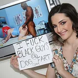 Tegan Mohr is a good a liar as she's a black cock slut. Tegan's boyfriend thinks that she's having a fun afternoon with her girlfriends.....wrong! Tegan's really our prowling for random black cock and her boyfriend's paranoia shines through via constant blowing up of her phone. The ignorant boyfriend has no idea that the love of his life is now sucking on a random black cock in the dirtiest of places: A vile and disgusting glory hole. Tegan's mouth only stops to answer her boyfriends constant calling, and she gives him an ear full. Who the fuck is he to disturb her as she sucks down an anonymous black cock? Tegan's annoyance towards her boyfriend comes to light when she goes RAW on that random black cock. Fidelity be damned. Tegan's pussy has a death grip around a cock that's easily five times the size of the paranoid piece of shit she has staying at home. The future, single Tegan Mohr rides that random black cock until her face becomes a canvas for his creamy goodness. She wants more but, as you guessed it, the phone blows up again and her black fuck buddy gets out of dodge. We end things with Tegan coming to the realization that her relationship with her boyfriend is terminated.