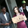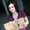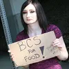 Violet is hungry, but not necessarily for food, she's hungry for black cock, and the jizz that they spew! She's out along the street with her "BCS for food" sign, and isn't getting any response from the cars passing by. Two black dudes from the hood drop by and try to see what she wants. After they see that she is a black cock slut for food, they take her back to their crib to fulfill her needs. They get her naked and start taking turns jamming those huge black dicks down her throat. Then it's time to fuck this very white brunette girl, and they run her through a series of 2-on-1 positions that keep her mouth and pussy well occupied, until it's time to provide her with her promised meal. They each cum in a bowl, and she dines on liquid protein and licks the bowls clean!
